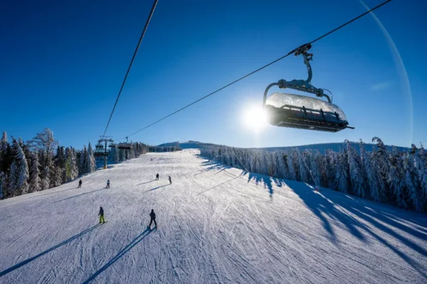 Monínec, just an hour’s drive from Prague, is perfect for a quick ski trip. Thanks to artificial snow technology, it offers reliable conditions throughout the season. It’s ideal for families and intermediate skiers.